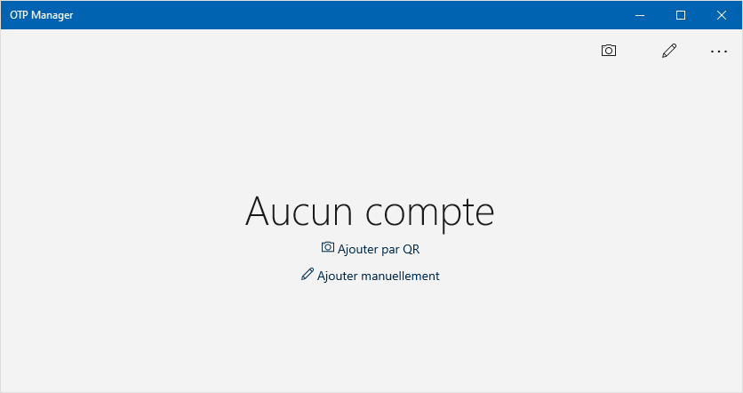- Ouvrez l'application OTP Manager et cliquez sur l'icône de crayon ou le lien Ajouter manuellement.