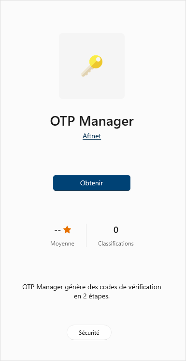 - Sélectionnez OTP Manager. Assurez-vous de choisir l’application offerte par le développeur Aftnet.