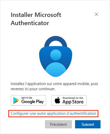 - Cliquez dans la fenêtre qui s'affiche sur votre ordinateur sur le lien Configurer une autre application d'authentification.